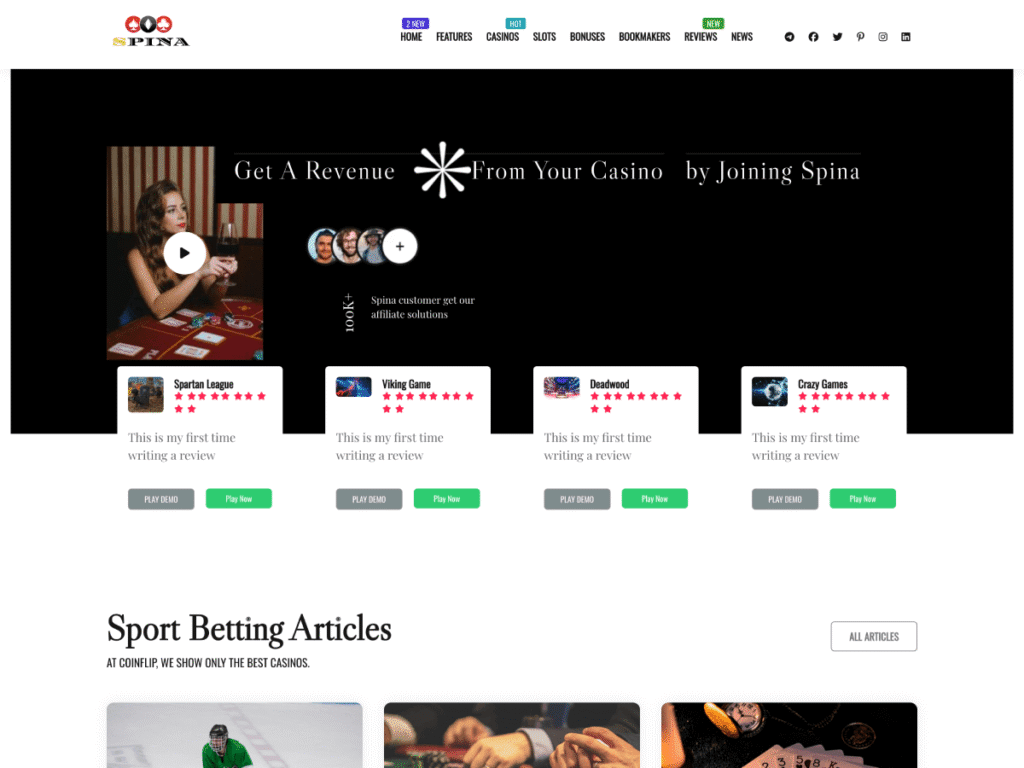 Best casinos affiliate WordPress Theme! make enjoy with Spina